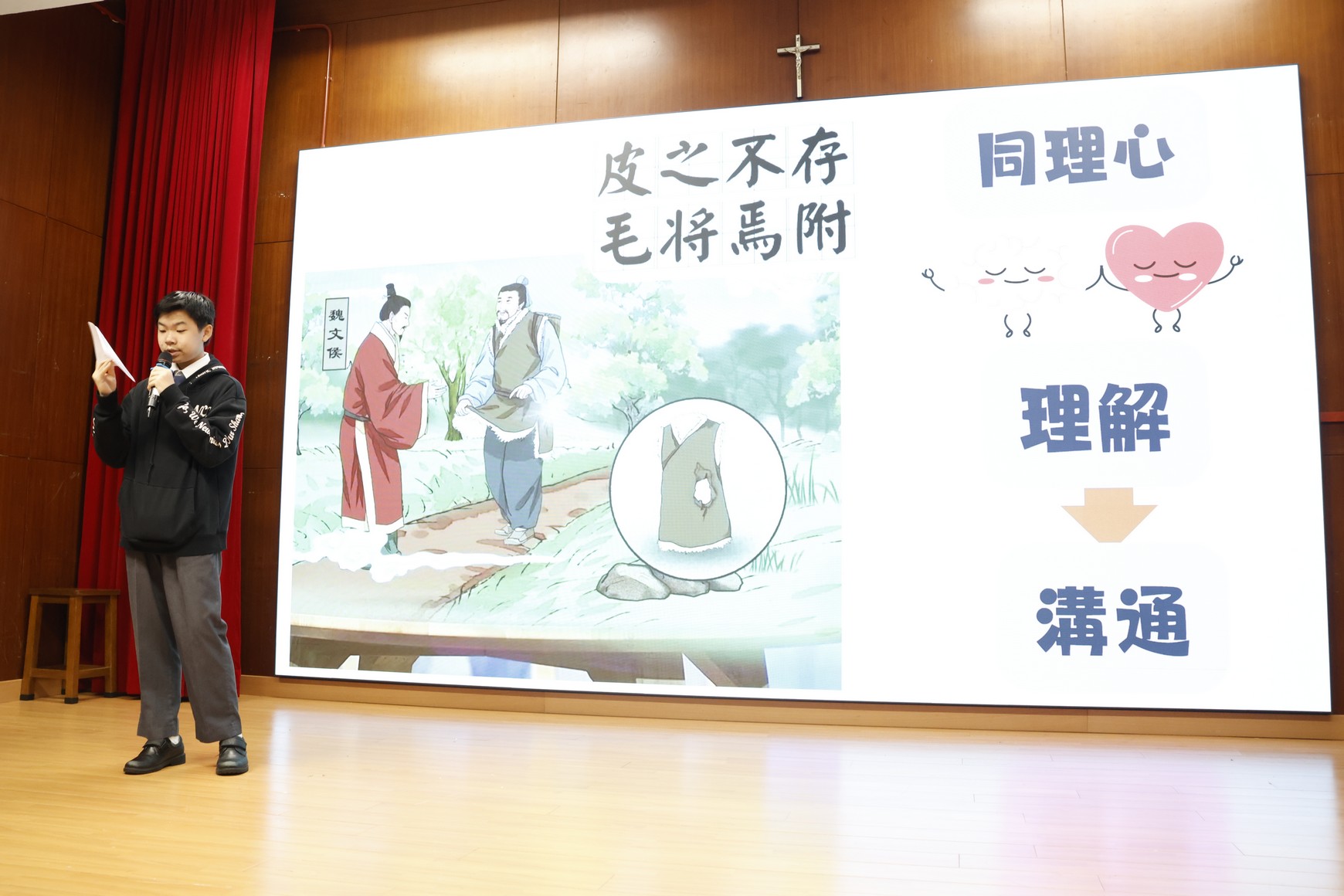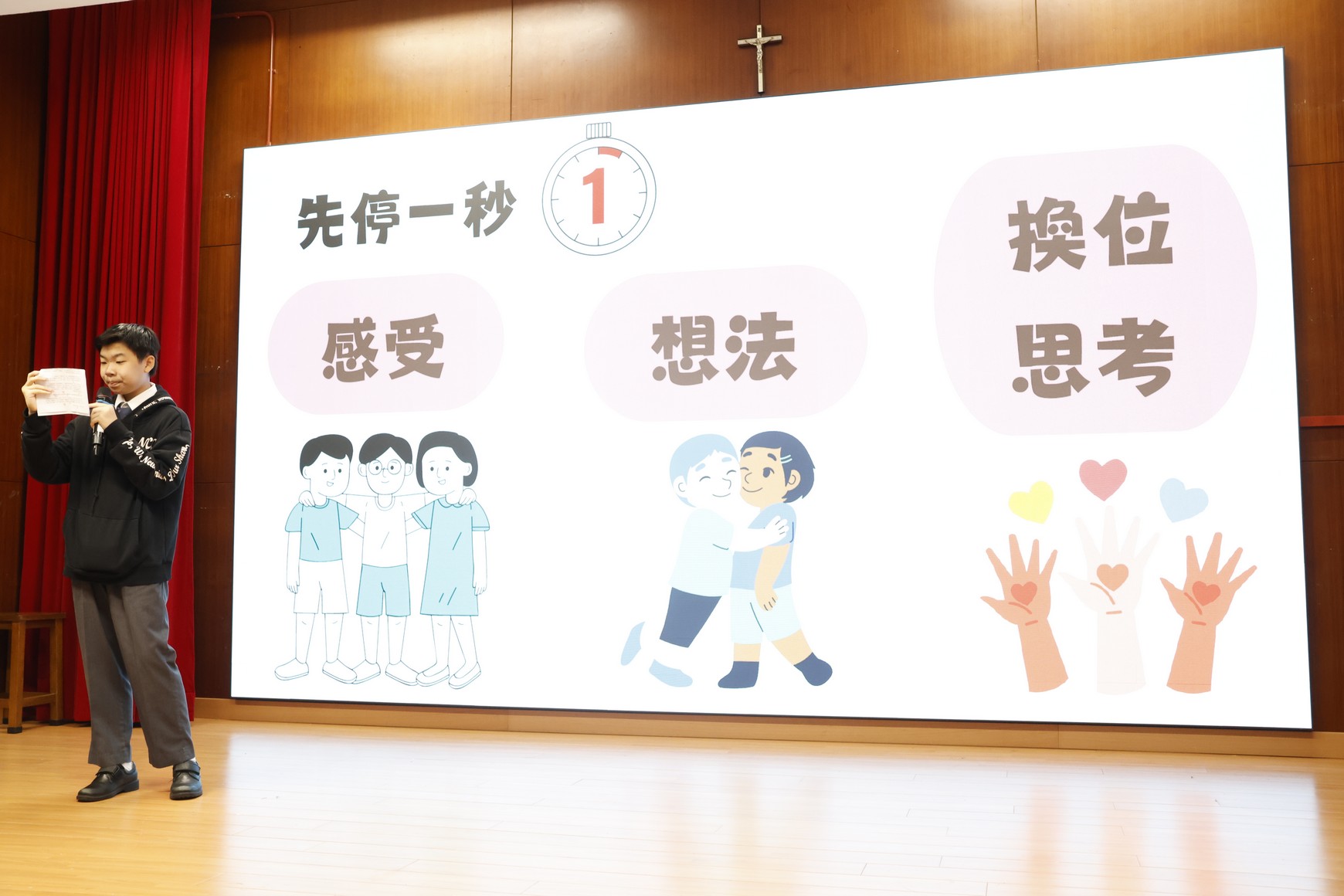 活動日期:2025年12月17日 活動內容:本校於早會進行中文科分享,主題為「同理心」。分享指出,同理心是將心比己,站在別人的角度去感受與理解他人,並透過耐心聆聽,真正明白對方的需要與感受。活動鼓勵同學在日常生活中多關心身邊的人,以理解代替指責,以聆聽建立關係,營造互相尊重、彼此關懷的校園氛圍。