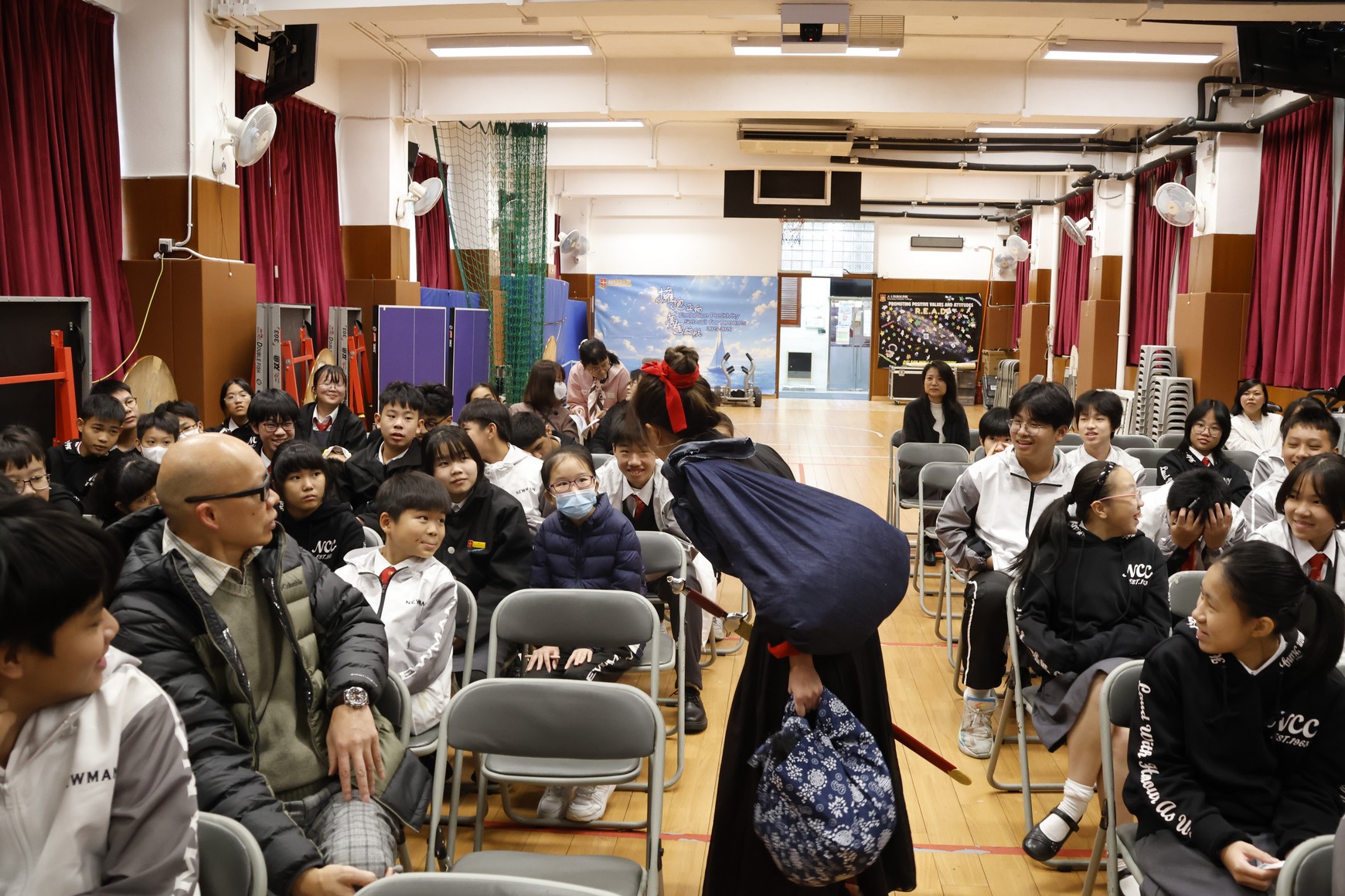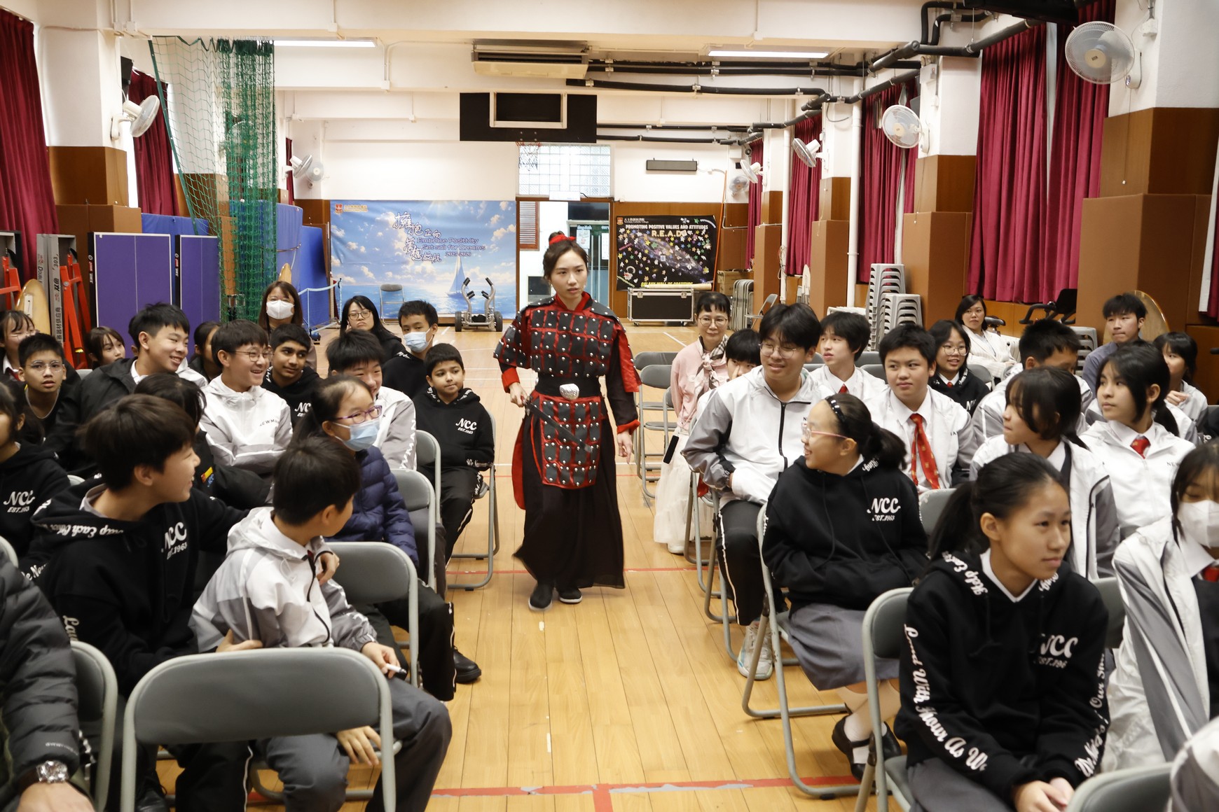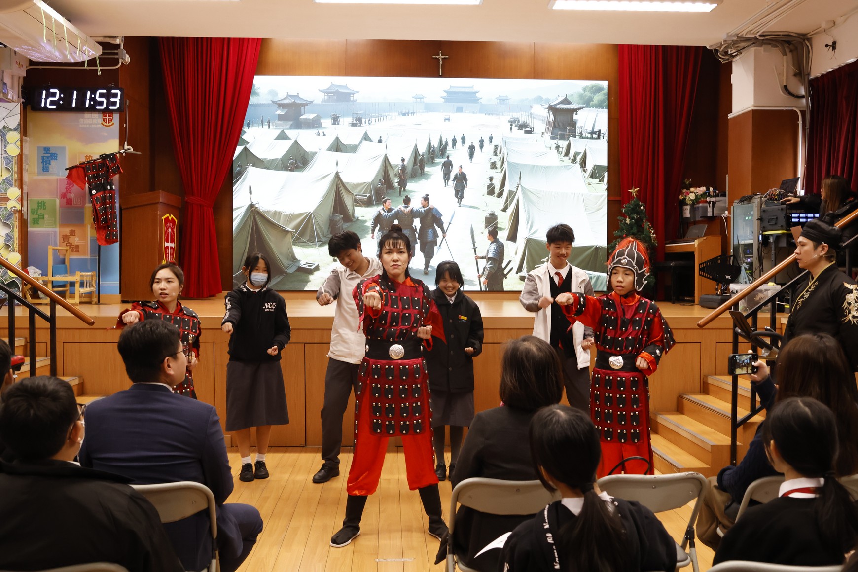 活動日期:2026年1月12日 活動內容:為配合本校「兩文三語週」,學校舉辦《花木蘭》話劇演出,中文科於課堂教授木蘭詩,講解故事內容,欣賞詩詞之美,而演出以普通話作為演出語言,讓同學在欣賞話劇的同時,加強普通話的應用能力。是次話劇本校學生也有參與部份演出,透過生動的表演,展現花木蘭勇敢、孝順與堅毅的精神。活動不但提升同學對中國文化的認識,亦為學生提供實踐語文學習及發揮潛能的平台,活動氣氛熱烈。