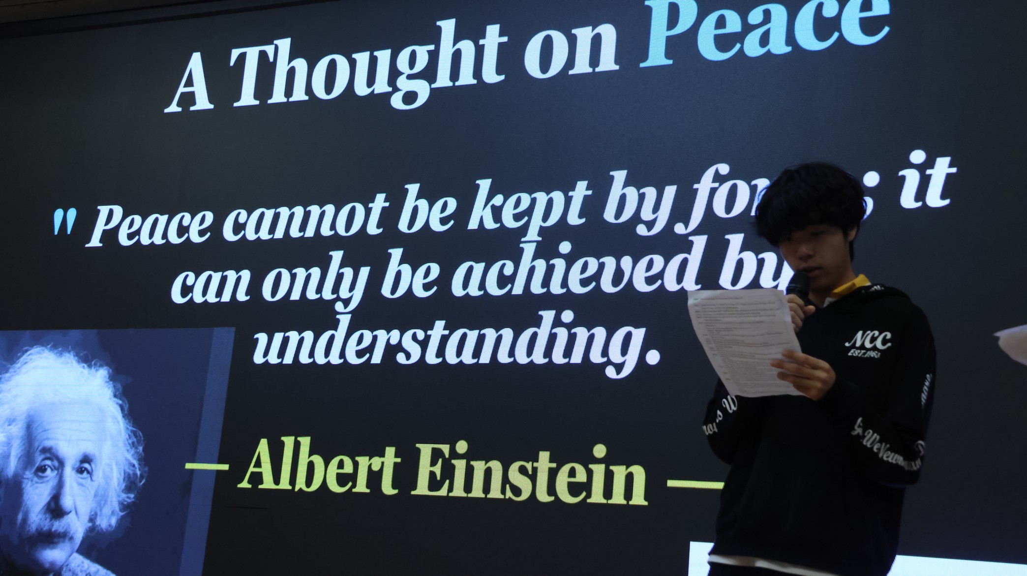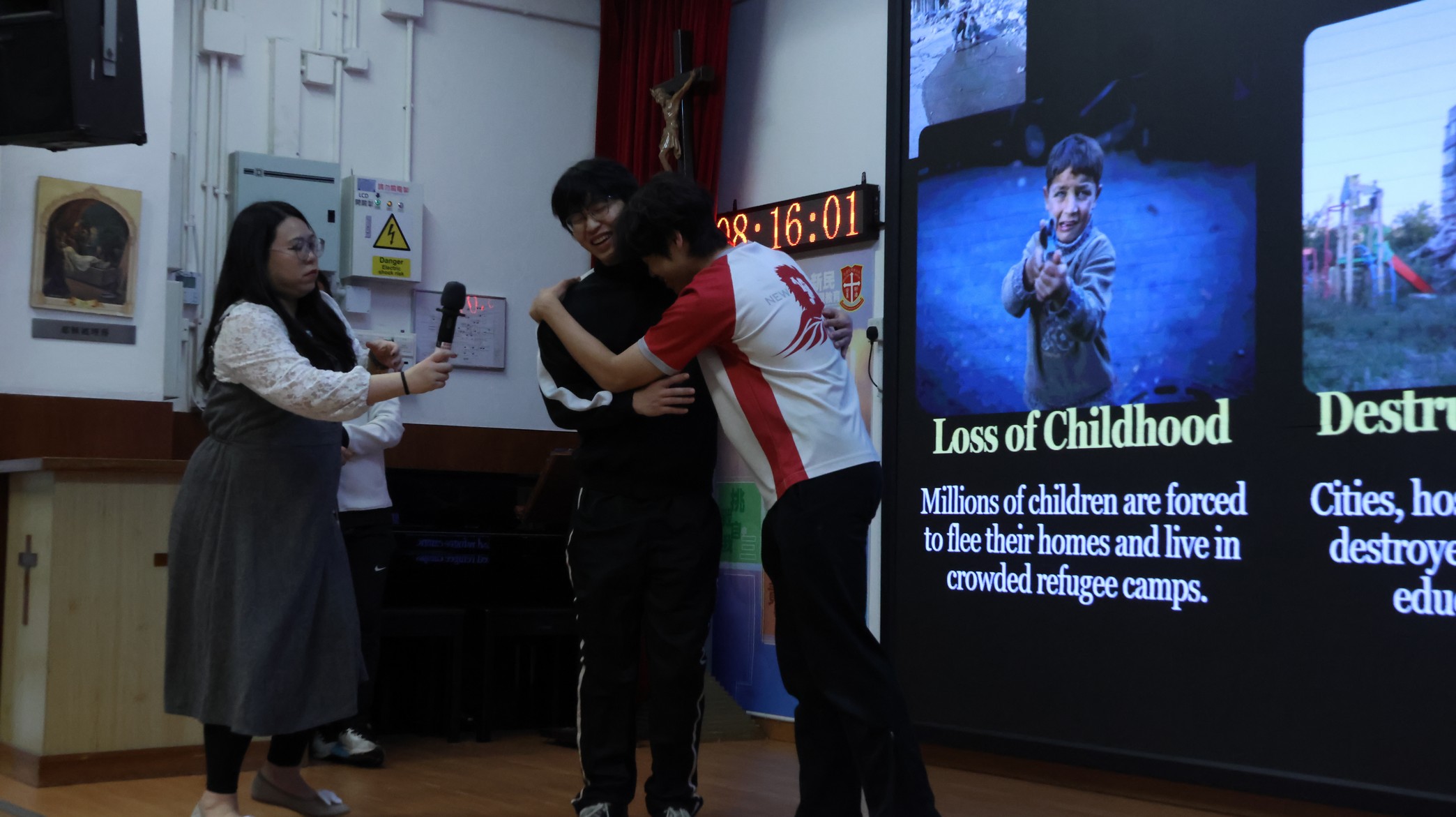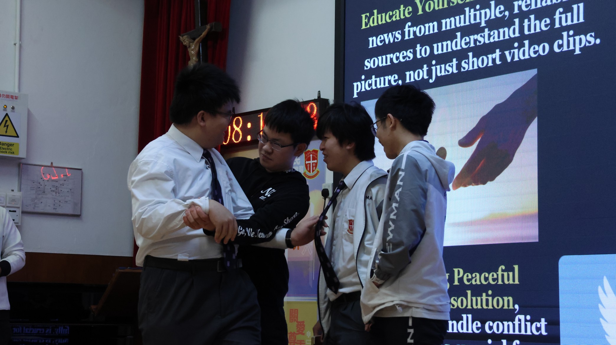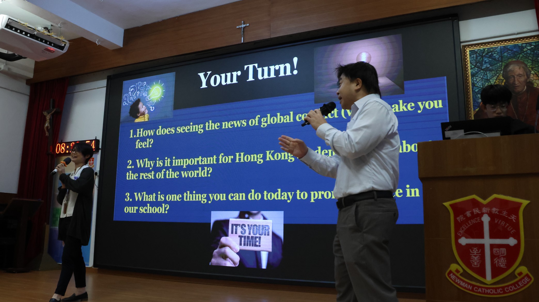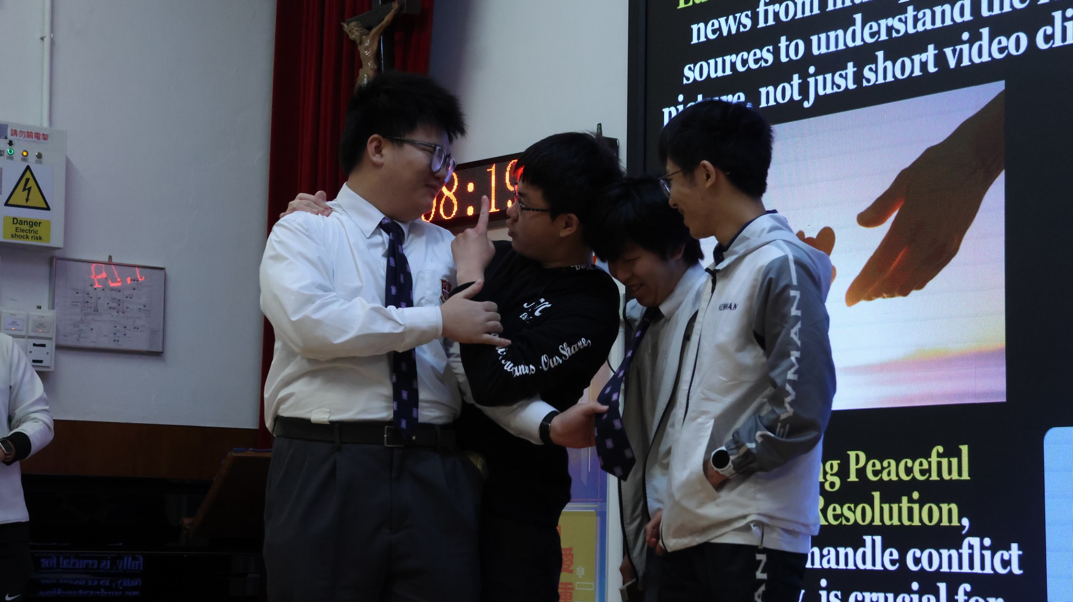 This morning, our English Friday Morning Assembly—part of Global Citizen Week—focused on “War, Conflict, and Global Peace.” Students from Class 5E2 took centre stage to share the key ideas behind why wars happen, the real human cost of conflict, and how global situations can affect communities far away, including Hong Kong. Through engaging mini-dramas and role-plays, they presented situations that helped the audience see conflict from different perspectives, encouraged empathy, and highlighted the importance of understanding rather than force. To deepen the discussion, students in the audience and Mr Kan were invited onto the stage to share their views and reflections. The assembly concluded with students reinforcing that young people can contribute to peace through critical thinking, kind communication, peaceful conflict resolution, and supporting others in need.