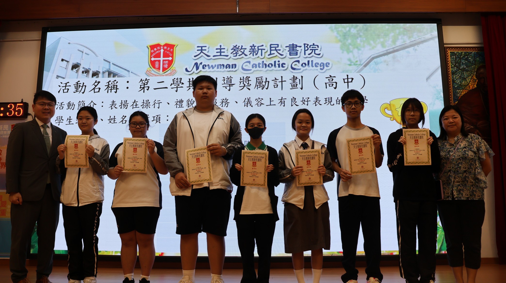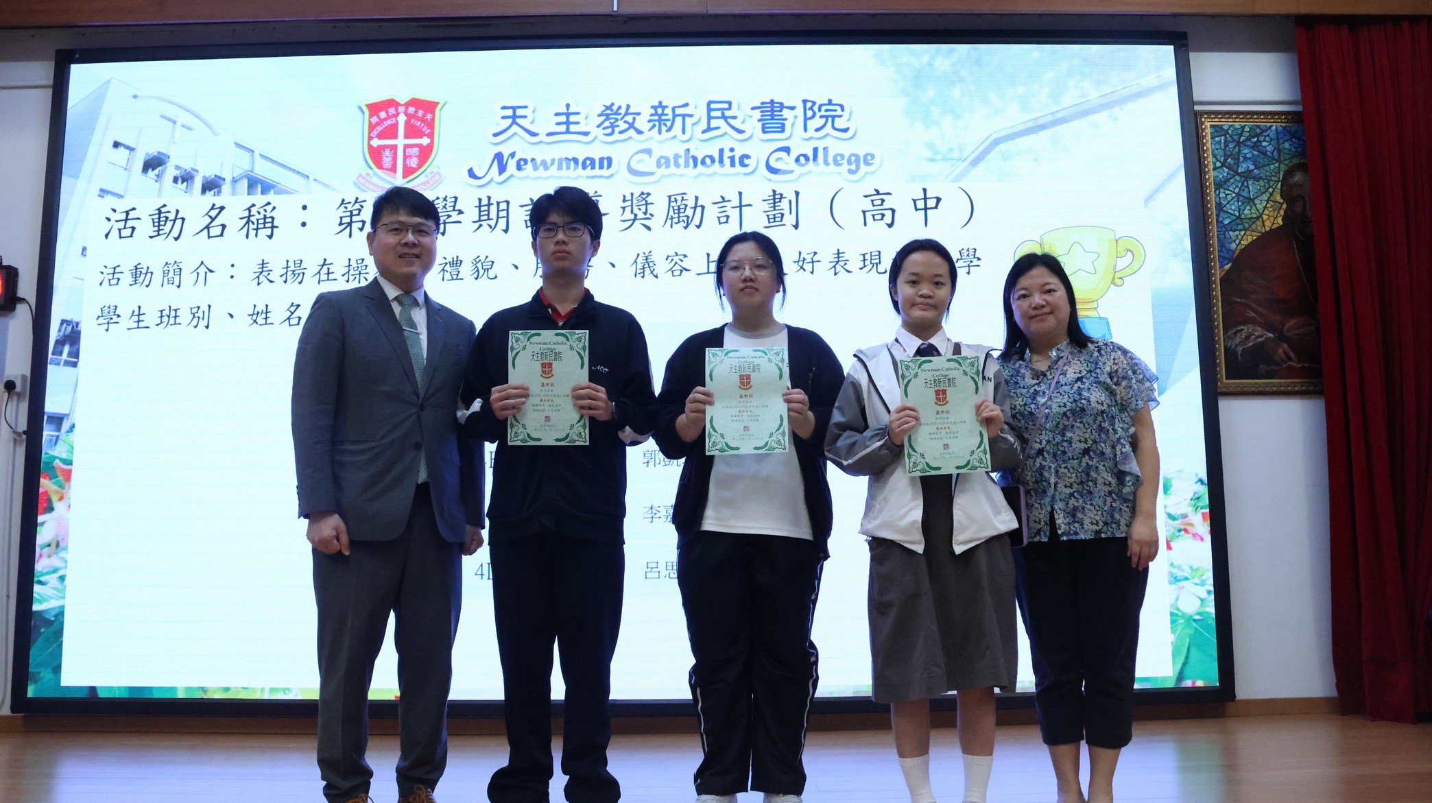 活動內容:為表揚品行優異的學生,學校向禮貌、儀容、操行、服務等方面有良好表現的學生頒發獎狀。