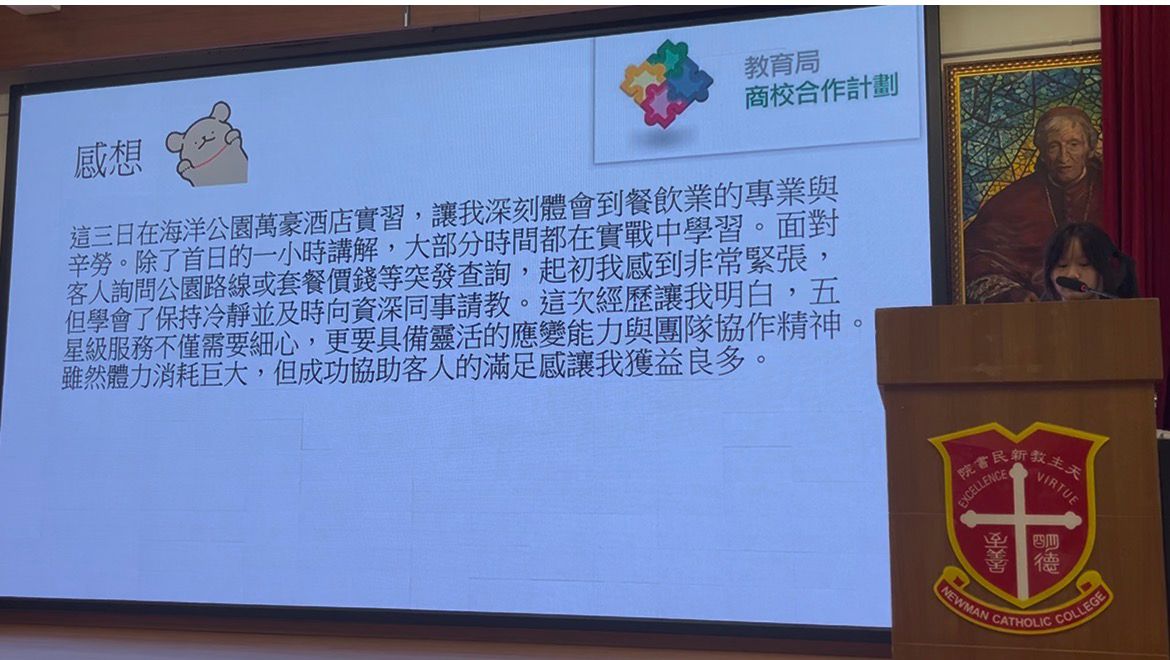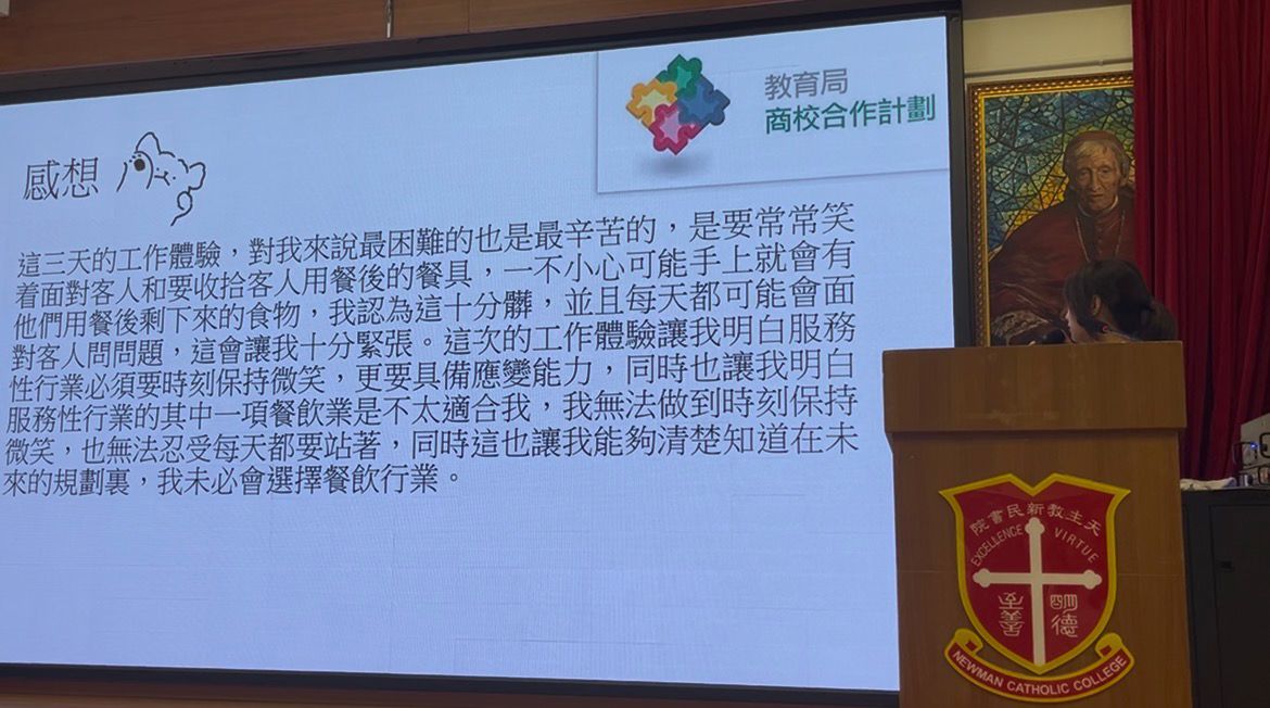 活動 日期: 2026年3月25日 活動內容:兩位中五同學在新年假期參加了由教局商校合作計劃配對的工作體驗計劃。計劃目的是透過機構夥伴提供的非傳統學習平台,讓學生認識不同行業、了解企業運作和僱主對僱員的要求、發掘職業性向、提升共通能力、建立正確的價值觀和工作態度,以適應經濟和社會的轉變,最終達致全人發展的目標。