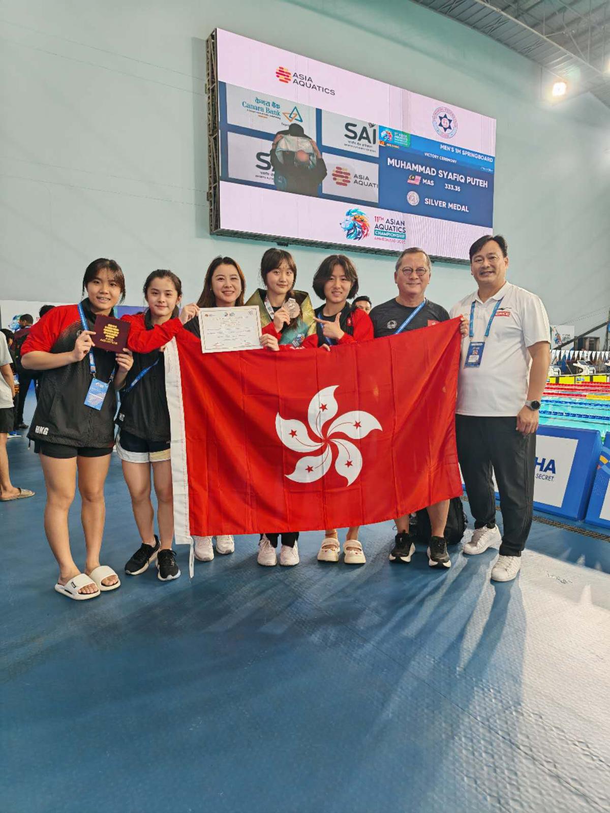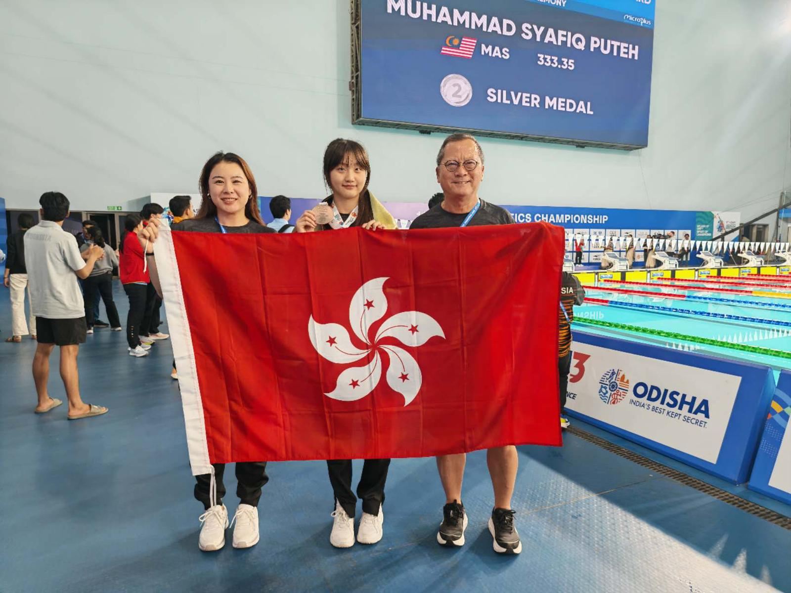 內容:本校王子依同學於「2025亞洲游泳錦標賽」中表現出色,在女子一米板跳水項目勇奪銅牌,為香港體壇再添佳績,亦為本校爭光。比賽當日(2025年9月29日),王子依同學發揮穩定,於第二跳後已進佔第三位,最終以總成績218.9分摘下銅牌。這是她繼早前於香港公開錦標賽勇奪混合雙人三米板金牌後,再度在國際賽事上取得佳績。能夠與中國頂級跳水選手一同登上頒獎台,實屬難能可貴,充分展現出王子依同學堅毅的精神、出色的技術與持續努力的成果。學校對王子依同學的優秀表現感到無比驕傲,並期望她繼續發揮潛能,在未來賽事中再創佳績,成為同學們學習的榜樣。