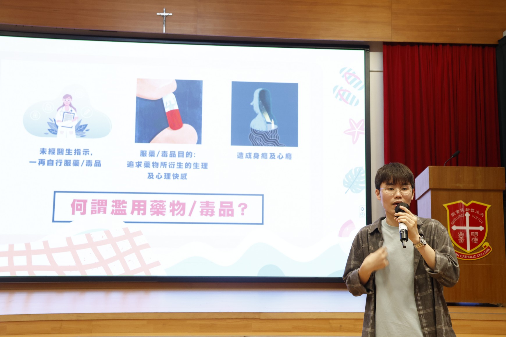 日期:2025年10月31日 內容:為了讓同學認識情緒與健康的關係,本校早前舉辦了「情緒健身室」講座,主題圍繞「情緒與濫用藥物的關聯」。PS33的社工首先解釋了何謂濫用藥物,以及毒品如何影響情緒和身心健康。講座中提到情緒的來源,而不良的情緒若未能正面處理,容易導致錯誤的行為選擇。講者亦介紹了香港常見的毒品種類,並播放了真實吸毒案例及短片,讓同學了解吸毒的嚴重後果。
