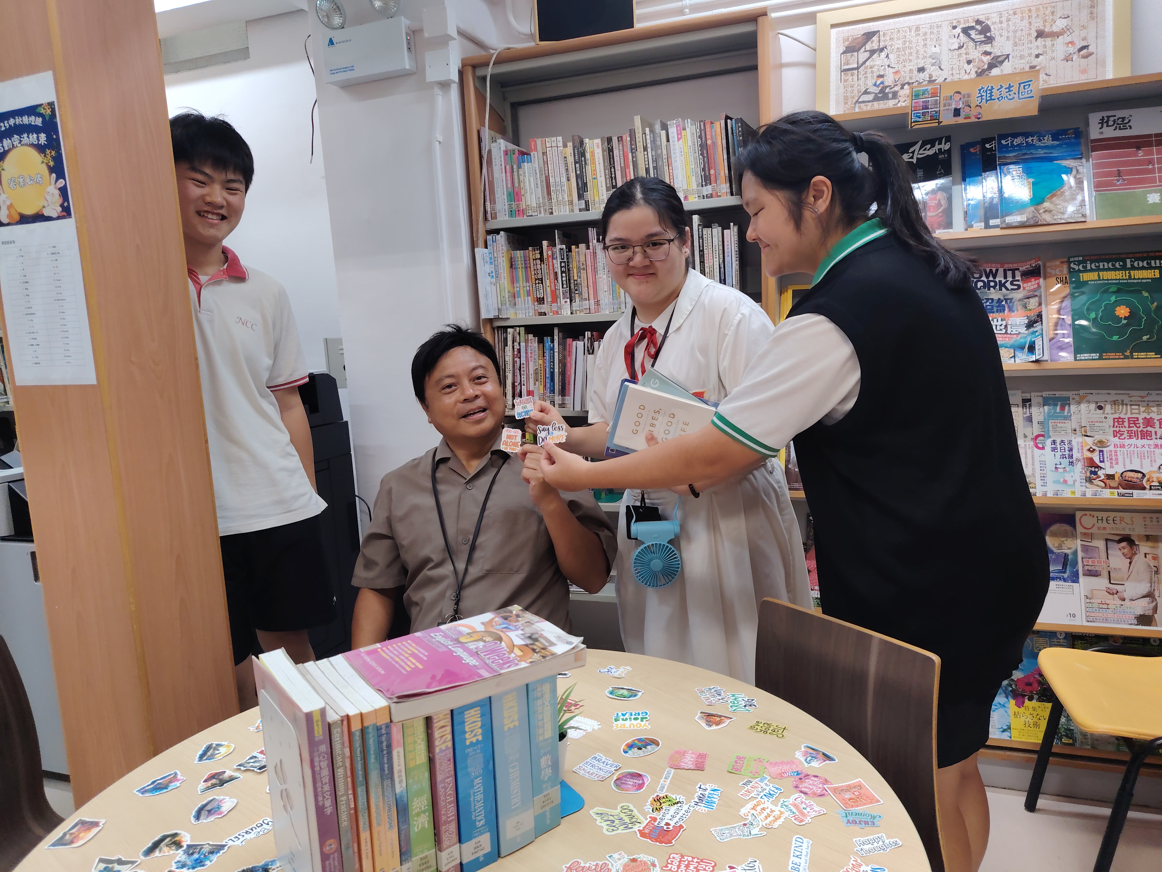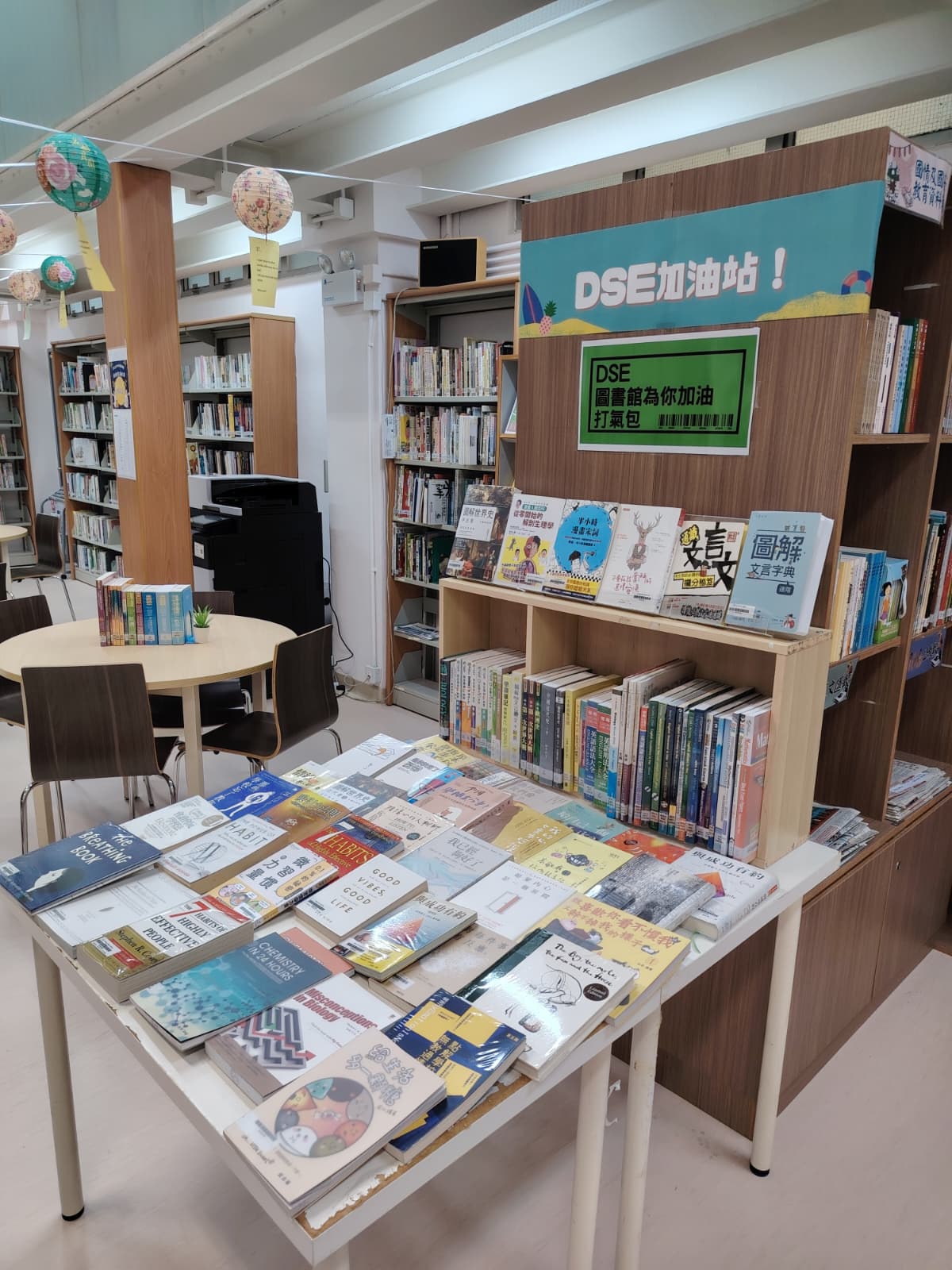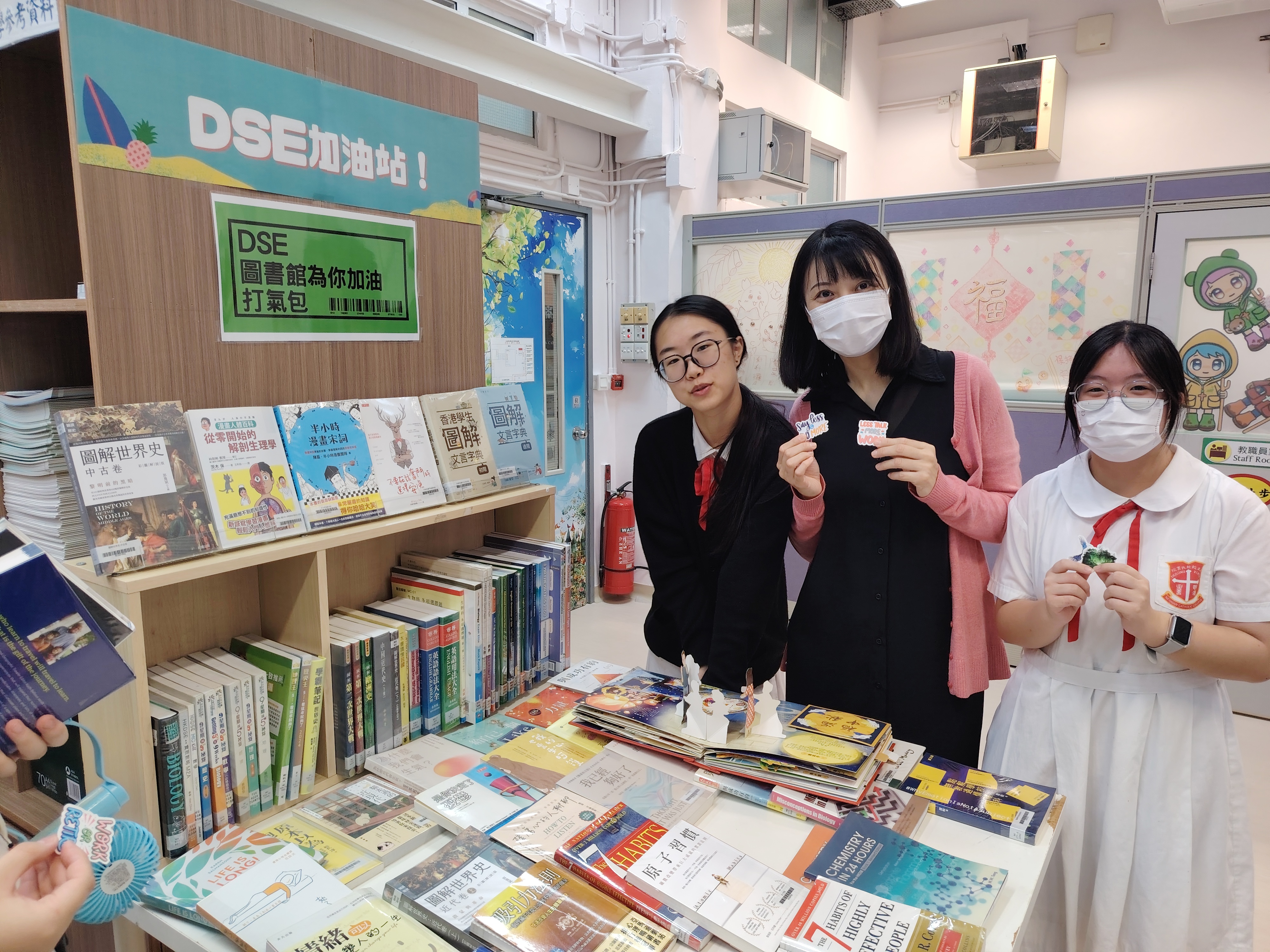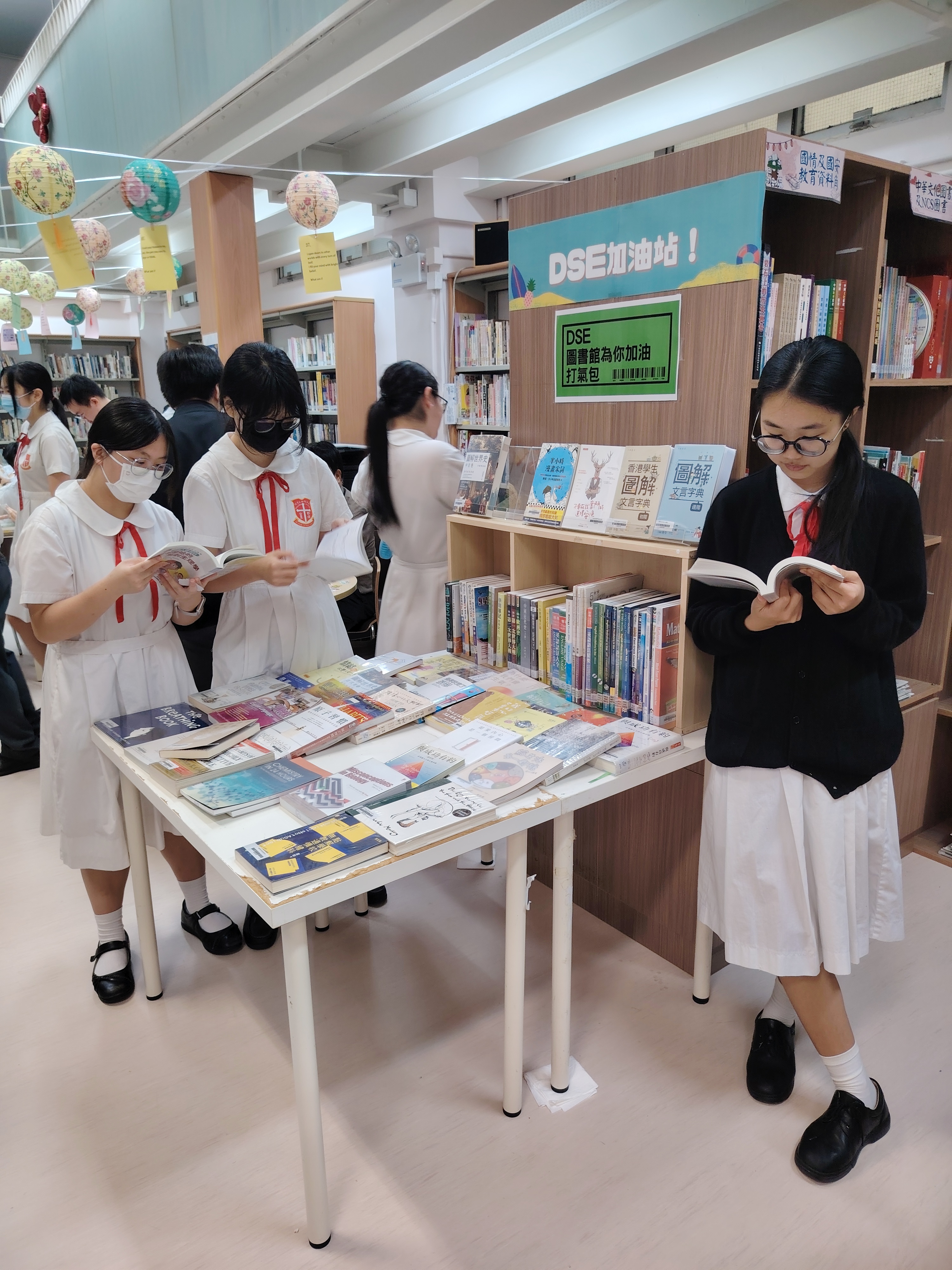 內容:為替中六同學打氣及協助他們準備迎接公開試,本校圖書館舉行DSE加油站及中六班級訪館活動。由中六級班主任為同學送上打氣包,給他們一點小窩心。圖書館亦特意增設迷你書展,展出參考書及處理情緒壓力的書籍,讓中六同學更好裝備自己,越過難關!