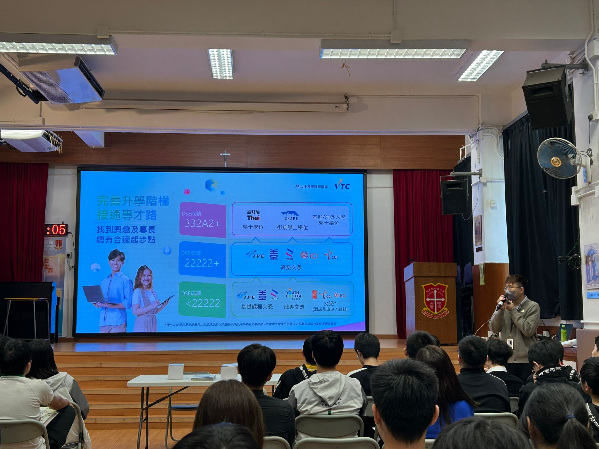 內容: VTC升學講座旨在讓學生了解職業訓練局(VTC)旗下院校的課程選擇與升學途徑,協助他們規劃未來發展方向,認識申請流程及支援措施,同時透過校園生活分享,提升對職業教育的認識與興趣。