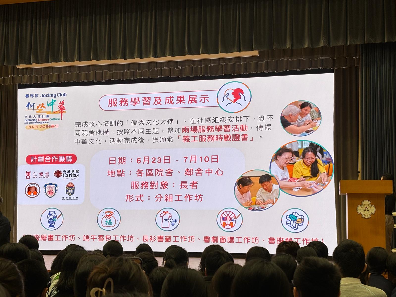 活動日期: 2026年3月7日 活動內容: 中四學生李嘉琳及劉沛嘉入選賽馬會「何以中華」文化大使重點培訓,她們將在3-7/2026的培訓中接受專業的文化知識指導,並參與多元化的學習活動,進一步提升其文化素養及大使實踐能力。